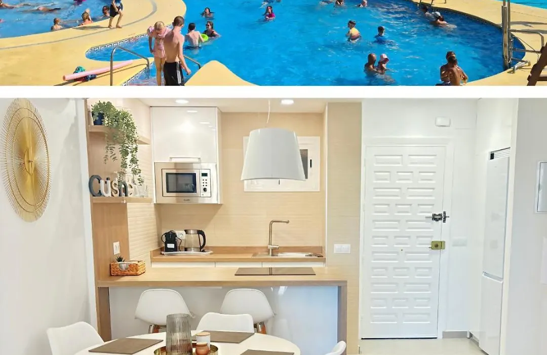 Das Apartment Benalmadena Jupiter - Delux 1Bedroom Apartment in Benalmádena liegt 15 km vom Flughafen Malaga entfernt. Dieses 1-Zimmer-Apartment bietet einen erholsamen Aufenthalt, mit einem Tauchbecken und einem Außenschwimmbad.